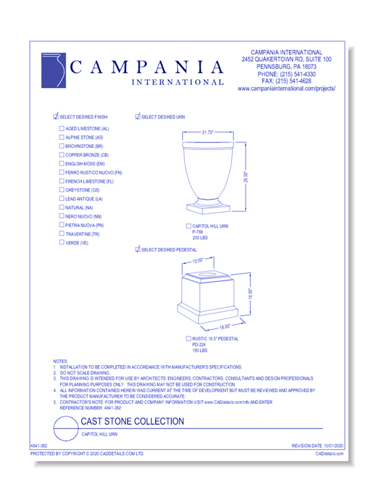 • Manufactured with a high density cast stone mix