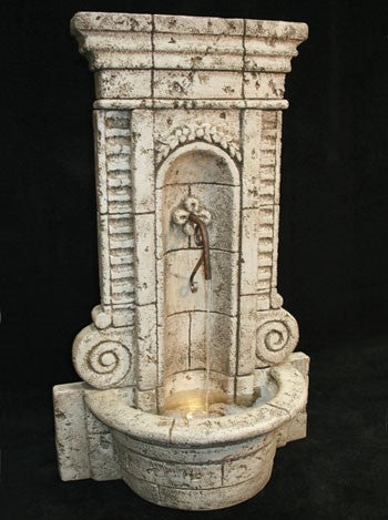 Add a classic touch to any outdoor setting with the beautiful Champagne Wall Fountain. It surely be a great addition for you garden or any outside area. It features a large spout originates from the center of a flower medallion where water pour out into the basin below. The soothing sound of water from the fountain make everyone relax.
