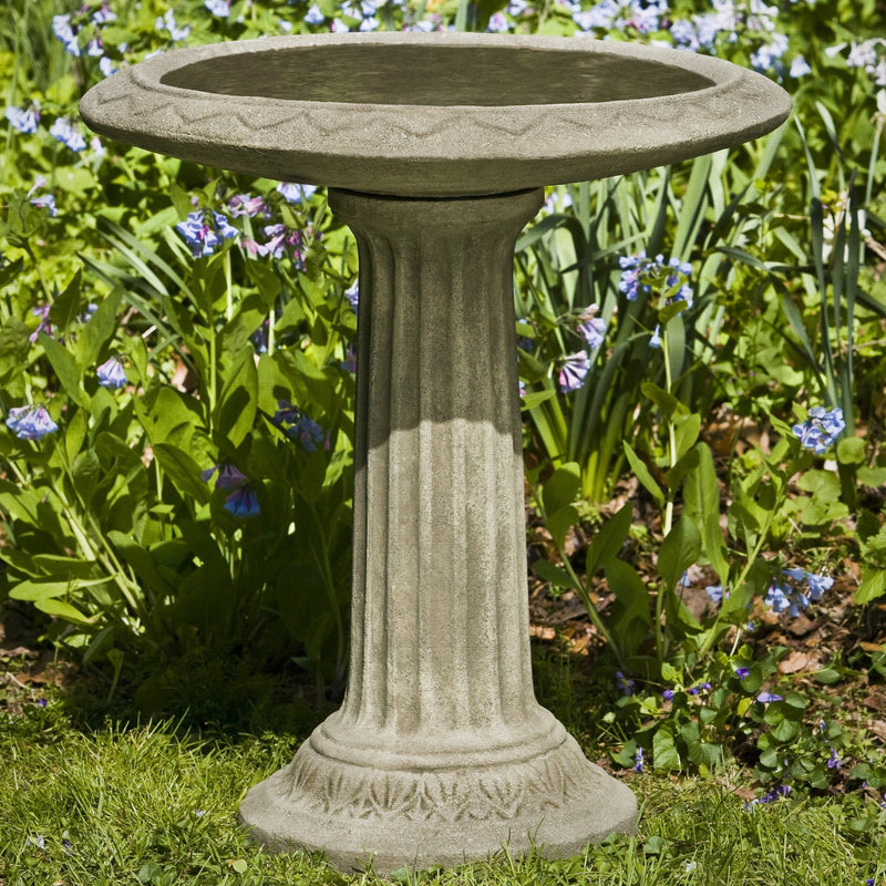 Cleaning Instructions: Campania’s cast stone birdbaths can be cleaned with diluted vinegar and water or with any commercially available mild detergent. Use a soft cloth, sponge, or brush. Do not pressure wash, apply corrosive cleaners or clean with anything abrasive. Note that it may take several cycles of wiping and drying before the birdbath is completely clean. Cast stone contains salts that may effloresce over time. You will notice a fine white powdery coating on the surface of the cast stone if the efflorescence is present in your product. If you wish to remove the salt deposits, Campania can recommend an appropriate an efflorescence cleaner.