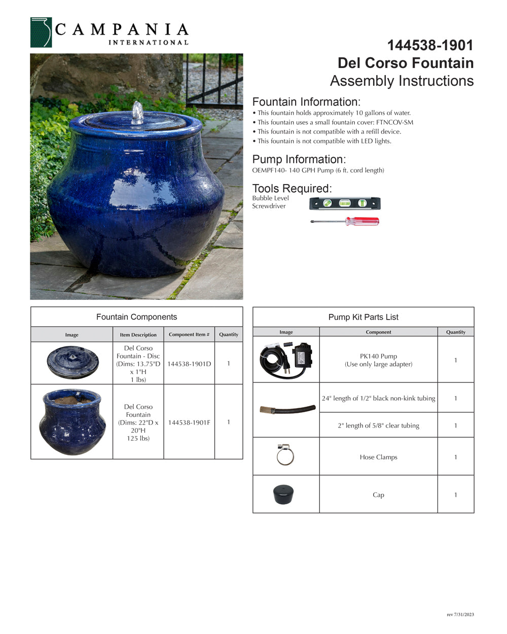Meet the Del Corso Glazed Terra Cotta Fountain, the new heavy duty heart of your patio. Standing at a stout 20 inches high and 22 inches wide, this Glazed Pottery beauty is no lightweight; it weighs 126 lbs. empty, and once you fill its deep 19-inch interior with the full 10 gallons of water, you’re looking at a formidable 210 lbs.! Clearly, this fountain is built to anchor a small boat, not just your garden decor. Finished in the exquisite Riviera Blue, it offers a visual splash of color without the actual wet kind - it has little to minimal splash, so your lounge chairs are safe. What you will get is a gorgeous, mellow “Echo” sound, loud enough to enjoy from a distance but discreet enough to be drowned out by the drama of moderate traffic.