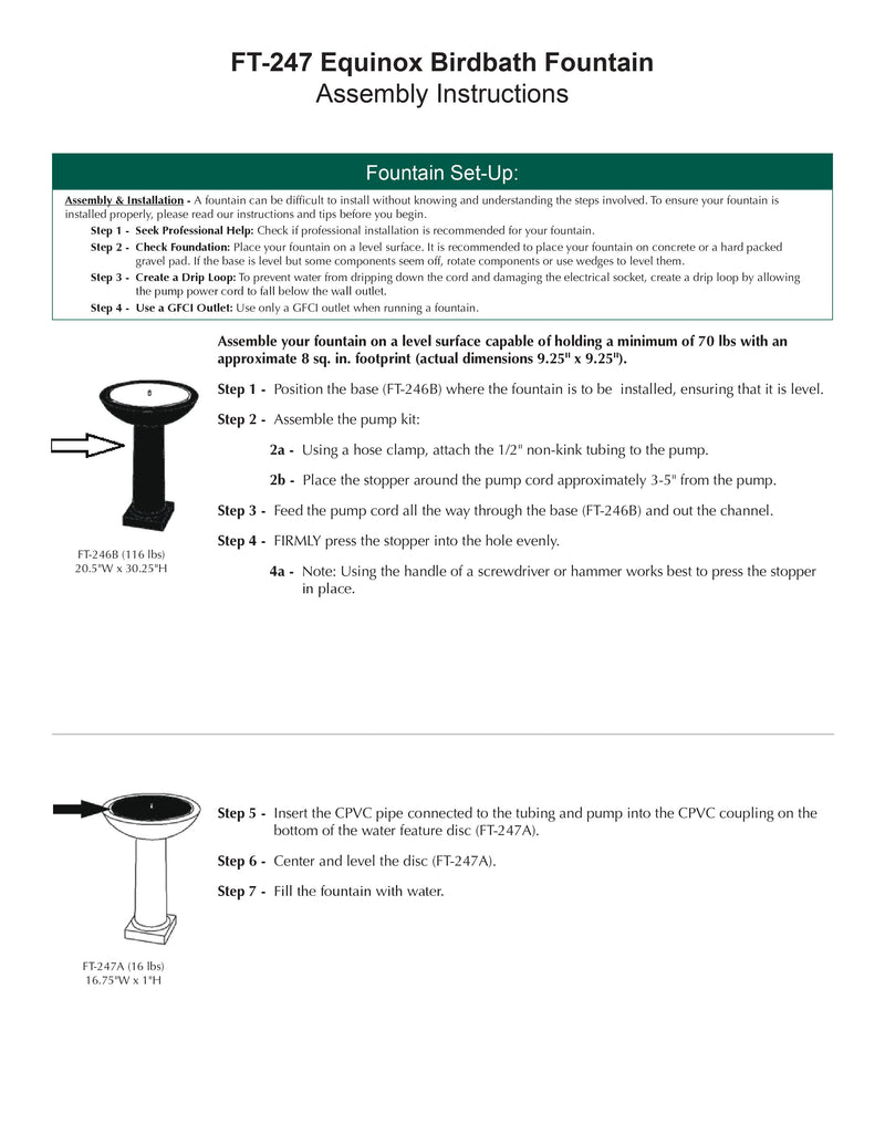 *Due to size and shape, some accessories may not be compatible with each fountain. For questions regarding fountain accessories, please contact customer service.