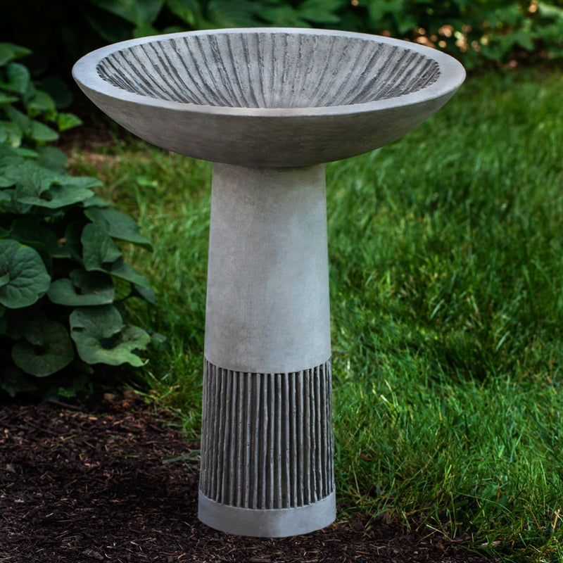 Cleaning Instructions: Campania’s cast stone birdbaths can be cleaned with diluted vinegar and water or with any commercially available mild detergent. Use a soft cloth, sponge, or brush. Do not pressure wash, apply corrosive cleaners or clean with anything abrasive. Note that it may take several cycles of wiping and drying before the birdbath is completely clean. Cast stone contains salts that may effloresce over time. You will notice a fine white powdery coating on the surface of the cast stone if the efflorescence is present in your product. If you wish to remove the salt deposits, Campania can recommend an appropriate an efflorescence cleaner.