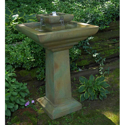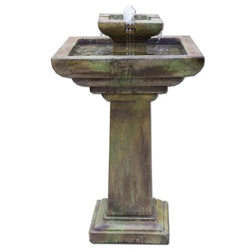 This outdoor fountain is available in 25 Different Finishes. Every finish is hand applied during the production process so color variation is expected. When the finish is applied to the water feature it is designed to replicate the look of naturally aged materials.