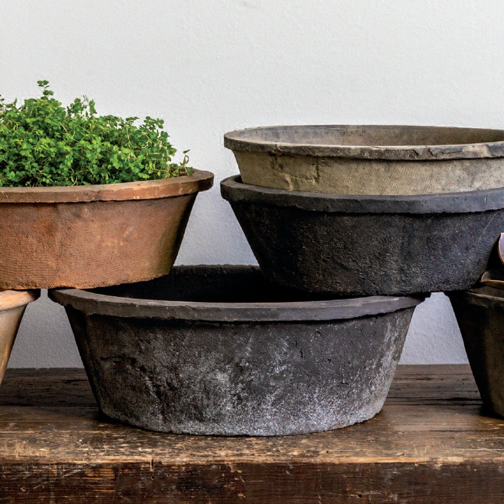 In the winter, if a planter is to remain planted, it should be raised up off the ground making sure not to block the drainage hole. This allows the planter to drain and will prevent the planter from freezing to the ground. If the planter is not to be planted, it should be brought inside a garage or shed. If this is not possible, follow the steps above, but turn the planter upside down to prevent it from filling with snow and ice. It should then be covered or wrapped with burlap or any absorbent material (old blanket/towel) and then wrapped with dark plastic to prevent it from accumulating moisture.