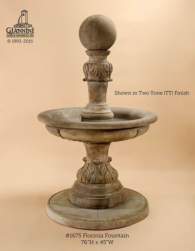 This outdoor fountain is available in 17 Different Finishes. Every finish is hand applied during the production process so color variation is expected. When the finish is applied to the water feature it is designed to replicate the look of naturally aged materials.