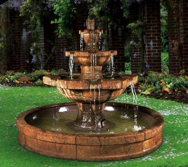 Create a serene outdoor environment with the Grenoble Cast Stone Outdoor Fountain in Pool. This fountain has three tiers and a wide pool and features a weathered appearance for more visual appeal.