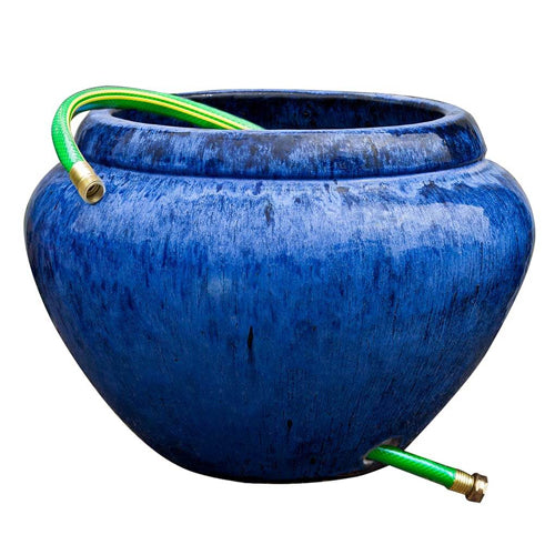 Our Glazed and Terra Cotta hose pots are equipped with pre-installed drainage holes to allow for drainage. The drain holes must be kept clear to maintain the longevity of your hose pot, especially in climates that undergo freeze thaw cycles in the winter. If you are unable to bring a hose pot out of the elements: We recommend covering the drain holes with a mesh screen or equivalent to keep debris from clogging the openings.