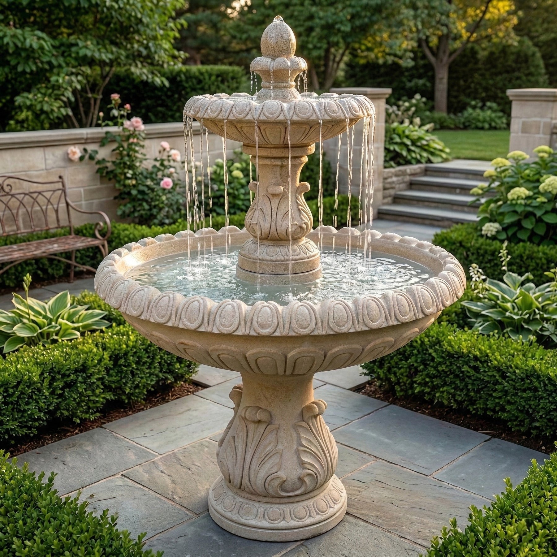 The International Outdoor Water Fountain is clean and elegant water fountain which makes it eye-catching and welcoming piece. Made of extra durable cast stone and Hand-crafted in the USA by skilled artisans for many years of relaxation and enjoyment. Listen to the wonderful sound of water and surely you'll love to stay in your garden.