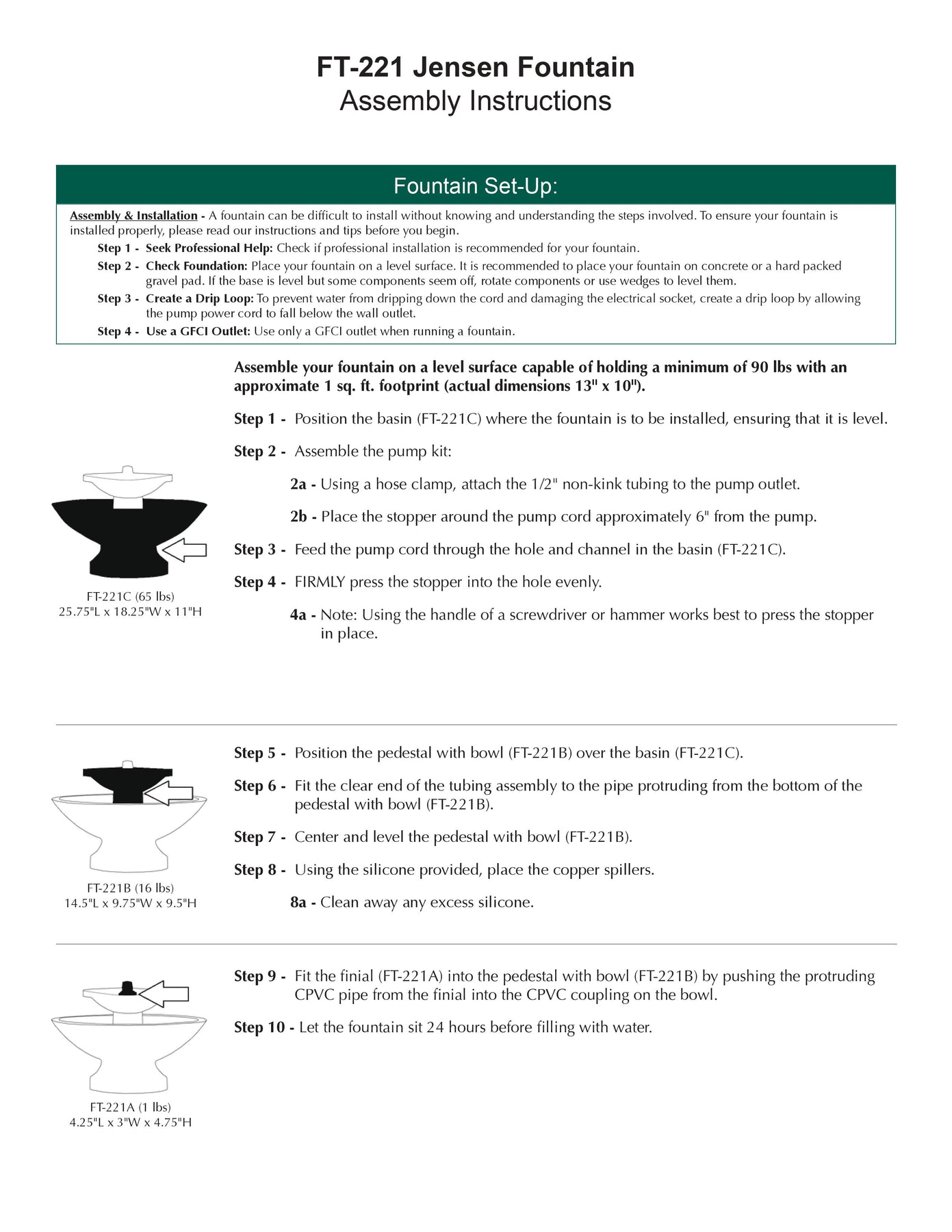 *Due to size and shape, some accessories may not be compatible with each fountain. For questions regarding fountain accessories, please contact customer service.
