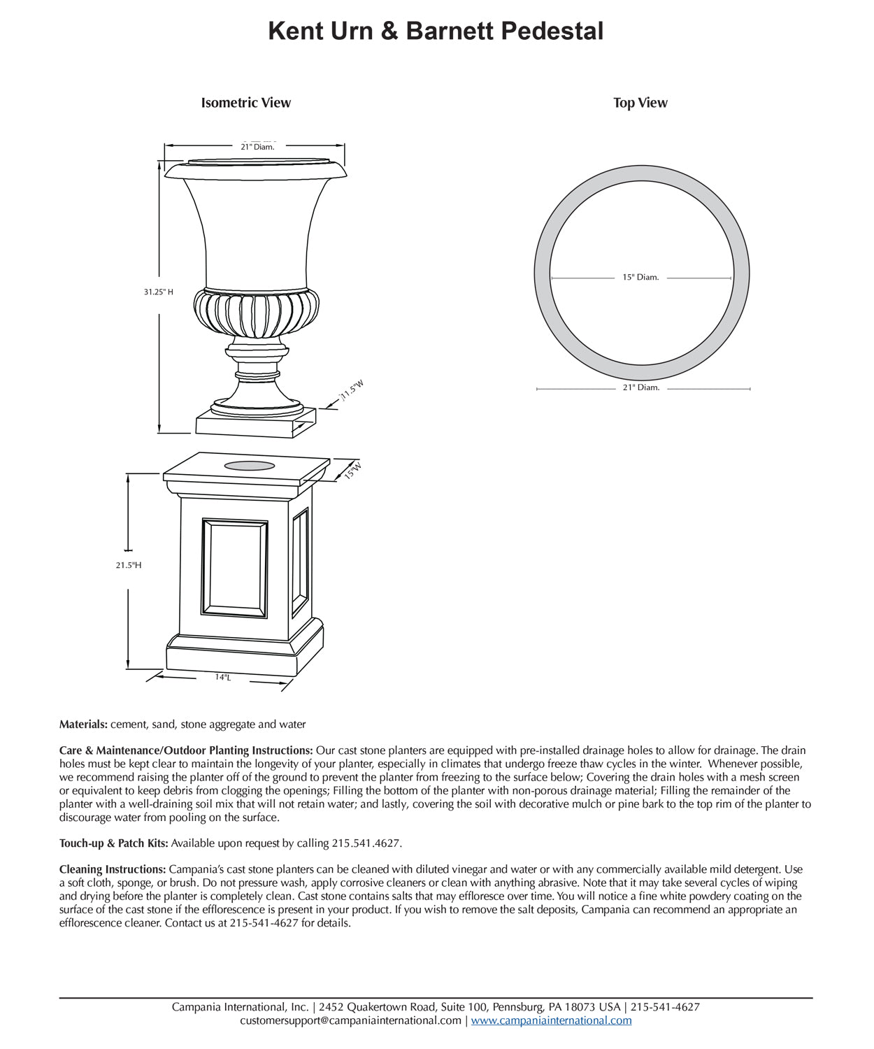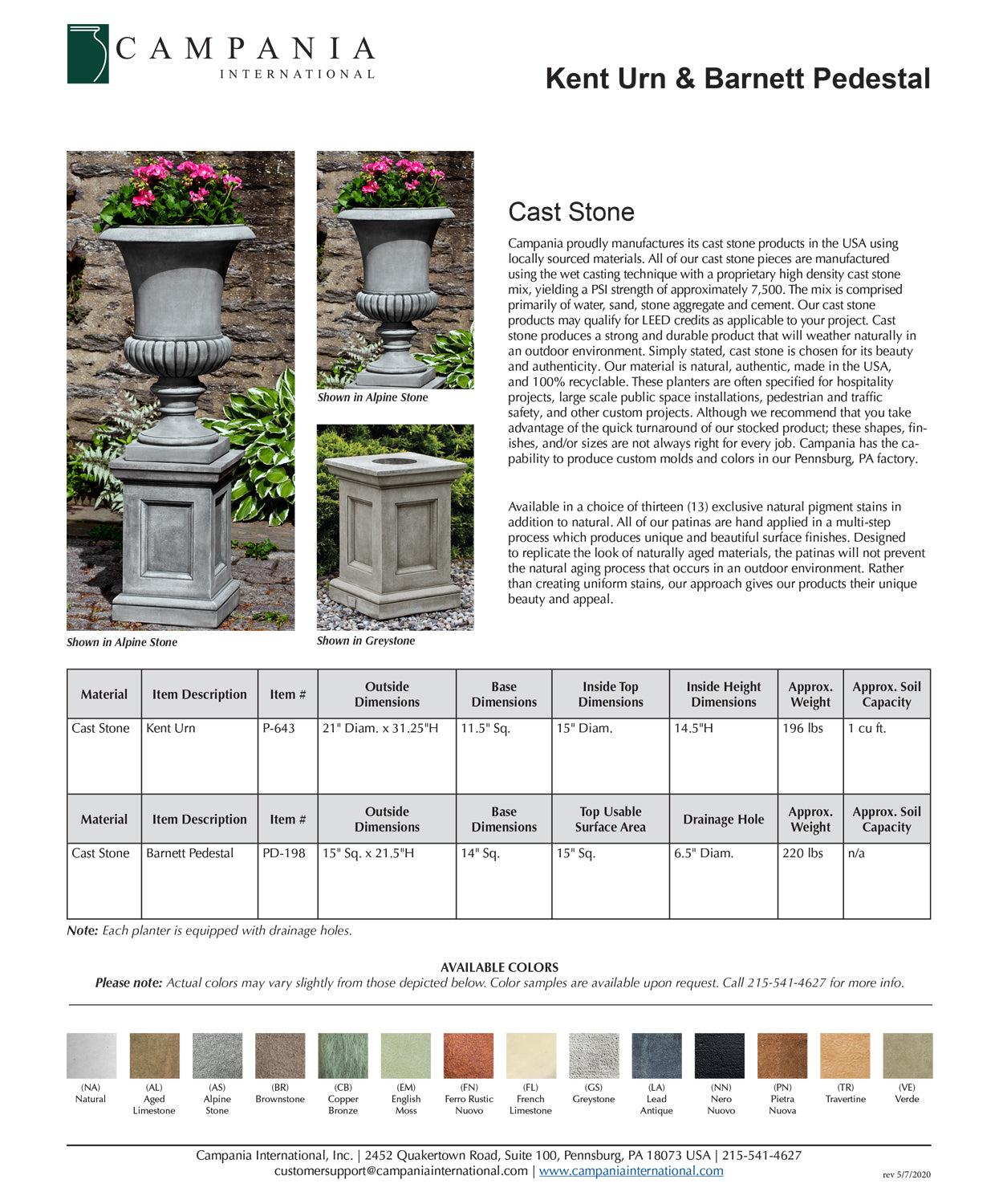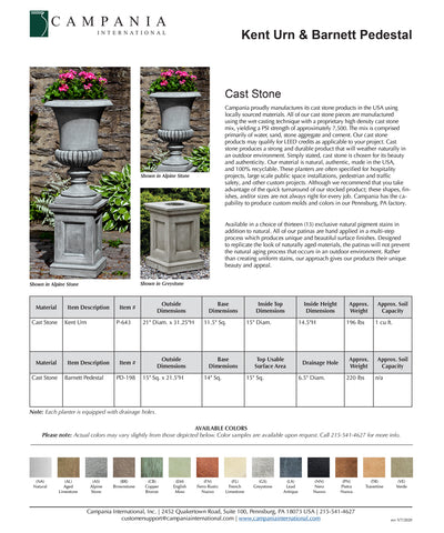 Campania proudly manufactures its cast stone products in the USA using locally sourced materials. All of our cast stone pieces are manufactured using the wet casting technique with a proprietary high density cast stone mix, yielding a PSI strength of approximately 7,500. The mix is comprised primarily of water, sand, stone aggregate and cement. Our cast stone products may qualify for LEED credits as applicable to your project. Cast stone produces a strong and durable product that will weather naturally in an outdoor environment. Simply stated, cast stone is chosen for its beauty and authenticity. Our material is natural, authentic, made in the USA, and 100% recyclable.