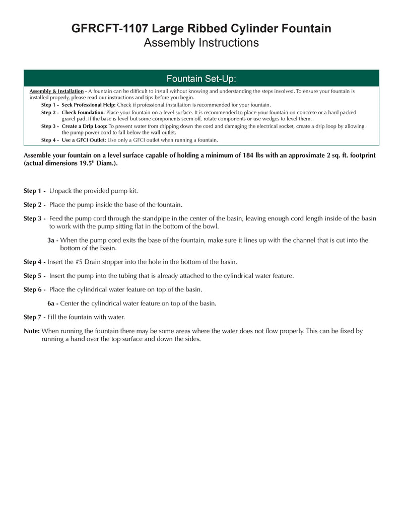 Large Ribbed Cylinder Fountain is a perfect accent or centerpiece in your garden or any outdoor setting. Made with glass fiber reinforced concrete (GFRC) to ensure high quality and surely last for many years. This simple and beautiful fountain will provide relaxation and comfort while staying at home.