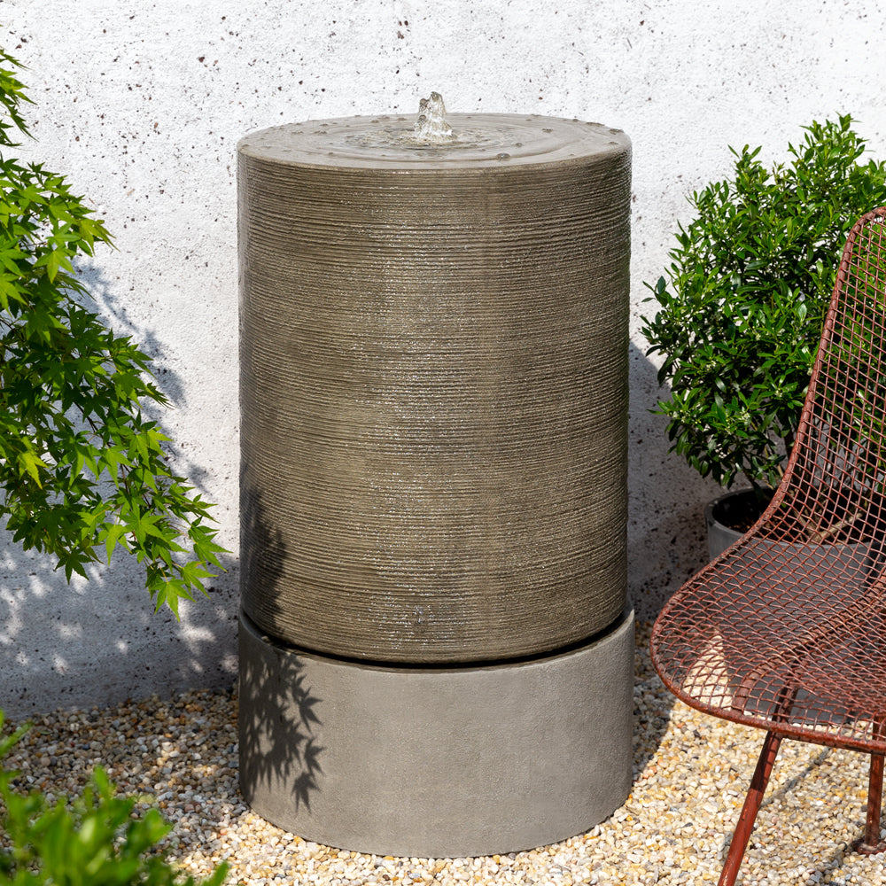Large Ribbed Cylinder Modern Outdoor Fountain