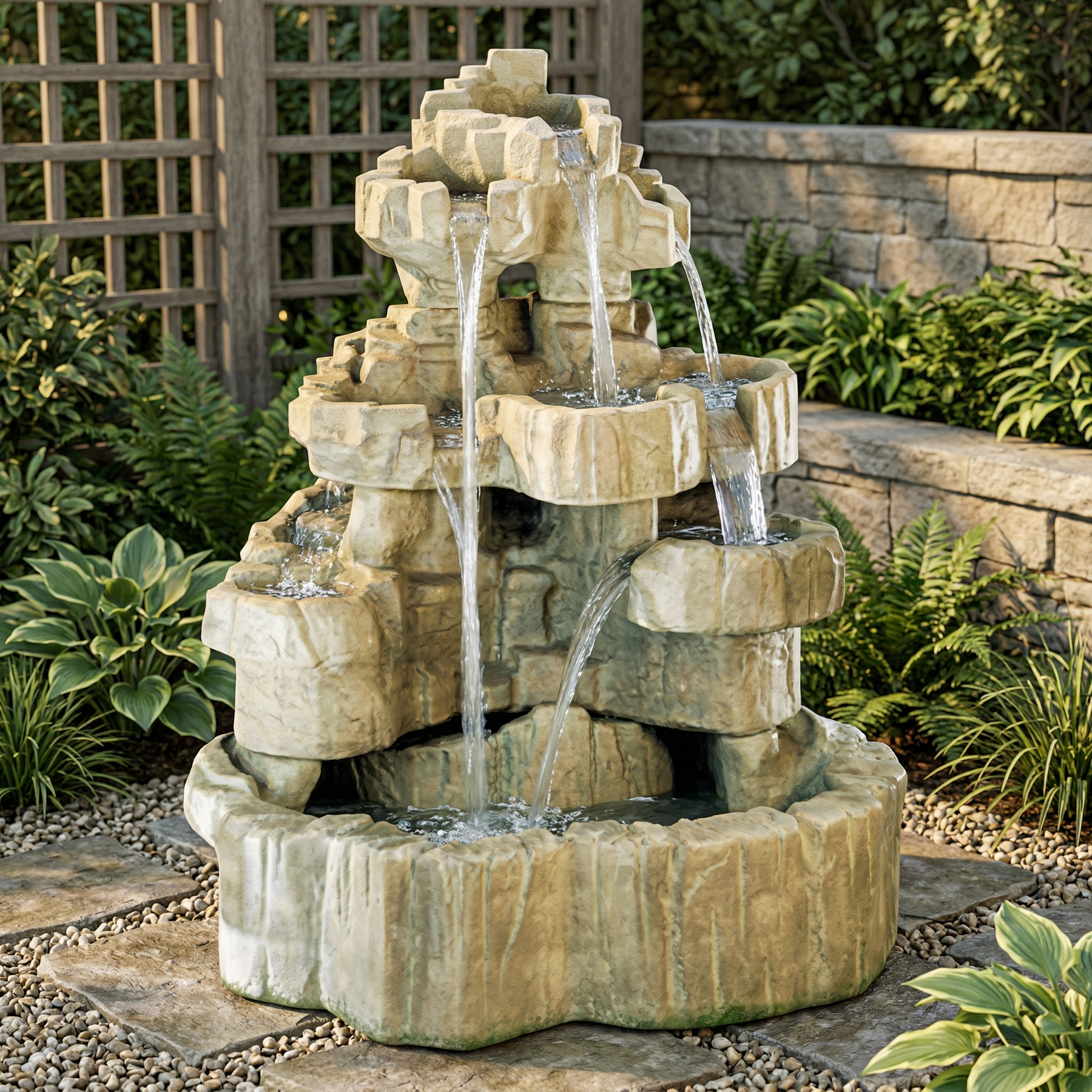 Create a pacifying atmosphere in your garden with the Large Rock Falls Fountain. The design of this water feature is sure to add beauty to any outdoor space. It also provides a relaxing sound as water falls from ledge to ledge. Perfect for an outdoor area enclosed by plants or foliage.