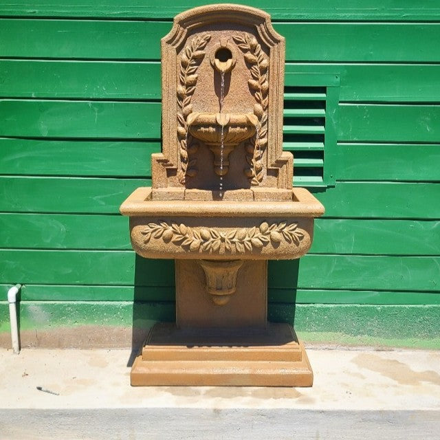 This outdoor fountain is available in 17 Different Finishes. Every finish is hand applied during the production process so color variation is expected. When the finish is applied to the water feature it is designed to replicate the look of naturally aged materials.