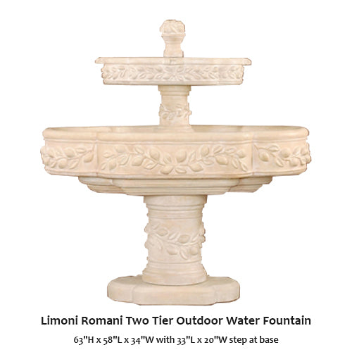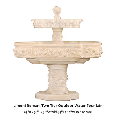 Bold and beautiful, The Limoni Romani Two Tier Outdoor Water Fountain will make a great center of attention to any courtyard or garden. This water feature is ornate from top to bottom and designed to last a lifetime.