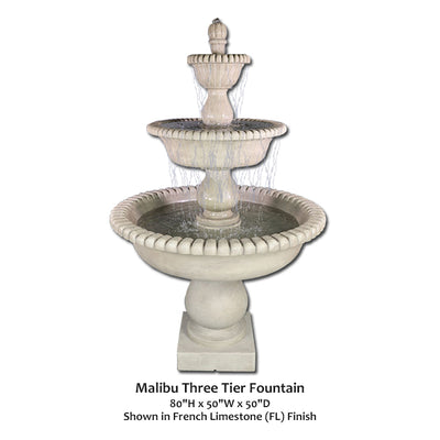 This outdoor fountain is available in 17 Different Finishes. Every finish is hand applied during the production process so color variation is expected. When the finish is applied to the water feature it is designed to replicate the look of naturally aged materials.