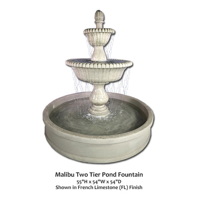 This outdoor fountain is available in 17 Different Finishes. Every finish is hand applied during the production process so color variation is expected. When the finish is applied to the water feature it is designed to replicate the look of naturally aged materials.