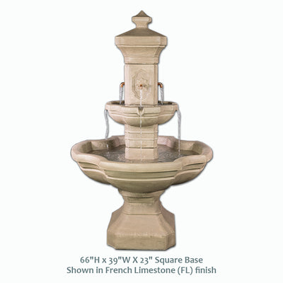 This outdoor fountain is available in 17 Different Finishes. Every finish is hand applied during the production process so color variation is expected. When the finish is applied to the water feature it is designed to replicate the look of naturally aged materials.