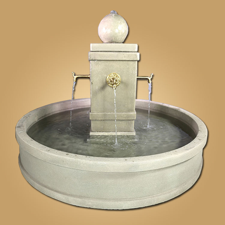 This outdoor fountain is available in 17 Different Finishes. Every finish is hand applied during the production process so color variation is expected. When the finish is applied to the water feature it is designed to replicate the look of naturally aged materials.