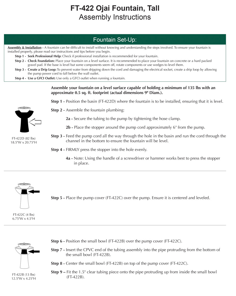 *Due to size and shape, some accessories may not be compatible with each fountain. For questions regarding fountain accessories, please contact customer service.