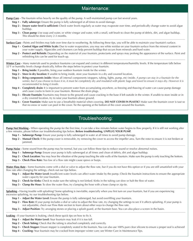 Maintaining your fountain is not difficult. You just need to have the right information to keep your fountain clean and running properly.