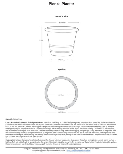 of the product will vary, making each piece unique. Please refer to Campania’s outdoor planting instructions for proper winter care.