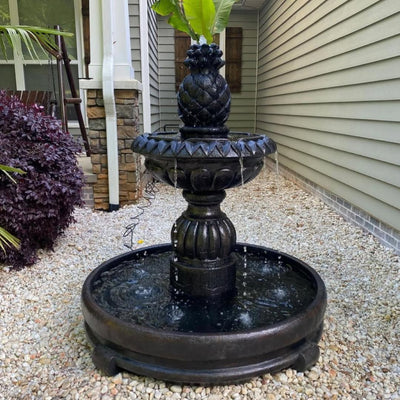 Add a tropical feel to your outdoor space with the Piña Cascada Fountain in Rondo Pool. It features a detailed pineapple finial, a gorgeous pedestal and bowl with a gadroon design, and circular pool.