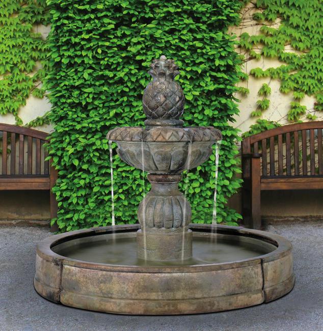The Piña Cascada Fountain in Valencia Pool is sure to lend a tropical vibe to your yard or garden. It features a circular pool, a detailed pineapple finial, a beautiful pedestal and bowl with a gadroon design.