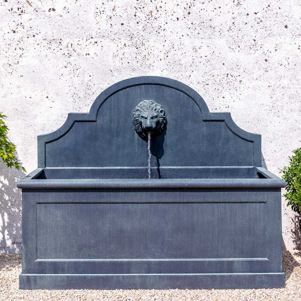 Portofino Outdoor Wall Fountain with Lion Spout will give your outdoor space a sense of sophistication and elegance. This fountain will bring beauty as well as the soothing sound of water to your garden. This durable glass fiber reinforced concrete (GFRC) fountain has been hand-crafted in the USA by skilled artisans, and is sure to become an eye-catching piece of your outdoor living area.