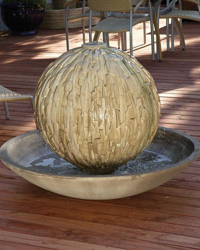 The Rubix & Wok Garden Fountain was inspired by the classic architectural components but presents itself to be a modern piece of art. It's constructed from glass fiber reinforced concrete, which resembles natural stone yet is lighter in weight and incredibly durable.