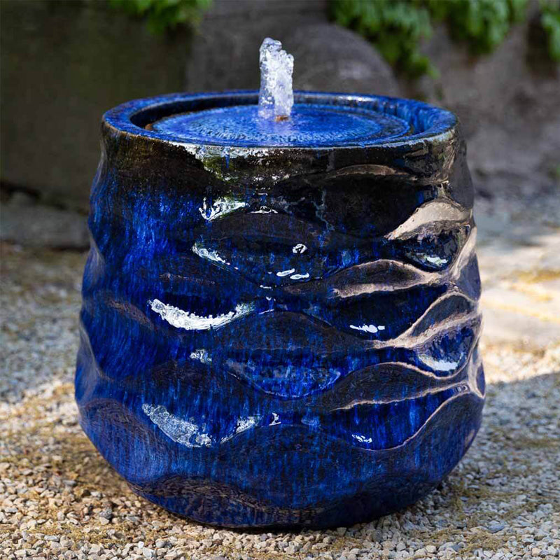 Enhance the decor of your indoor or outdoor area by adding this elegant fountain. The rumba garden fountain have a fun wavy pattern circling the vessels with an updated retro look while a rich blue color always looks sophisticated. It will surely bring a unique beauty to any area of your home.