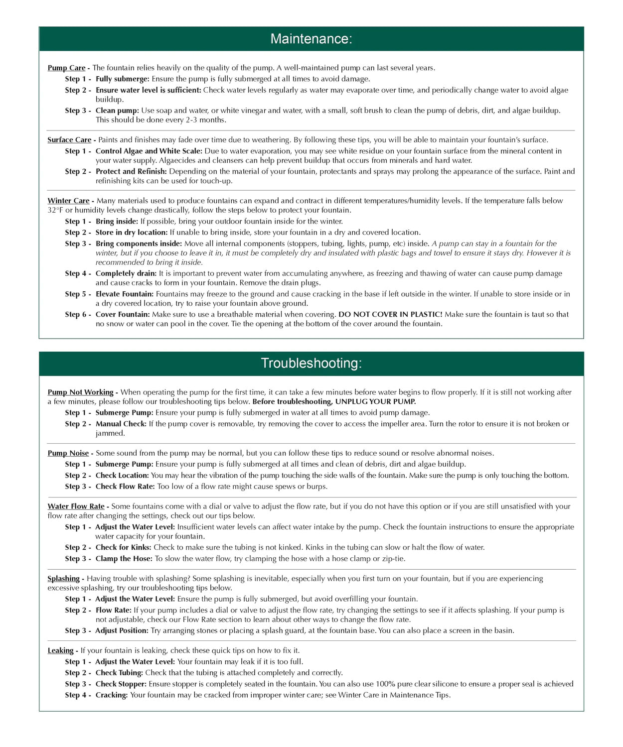 Maintaining your fountain is not difficult. You just need to have the right information to keep your fountain clean and running properly.