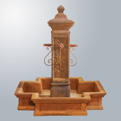 This outdoor fountain is available in 17 Different Finishes. Every finish is hand applied during the production process so color variation is expected. When the finish is applied to the water feature it is designed to replicate the look of naturally aged materials.