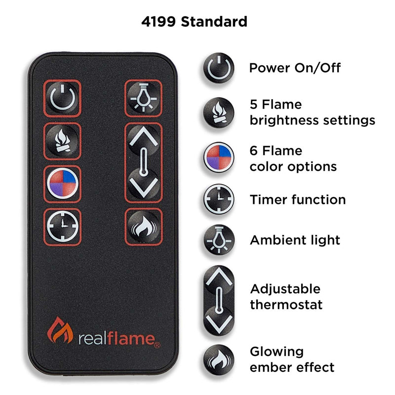 Ignite a touch of contemporary charm with the Silverton Electric Fireplace: 48" of sleek lines and cozy comfort.** This masterpiece, crafted with a real wood mantel (available in White or Black), instantly elevates your space. No chimney fuss needed – just plug it in and let the Real Flame® VividFlame firebox dance with six captivating flame colors and five brightness levels, all controlled from your remote. Enjoy supplemental heat up to 1,000 sq. ft. or simply relish the year-round ambiance without the warmth. The Silverton includes everything you need: mantel, firebox with log set, hardware, and remote control. Embrace effortless elegance and the magic of firelight: welcome the Silverton into your home and let it ignite a modern haven.
