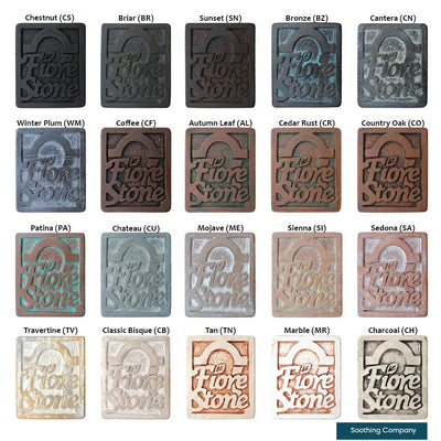 This outdoor fountain is available in 40 Different Finishes. Every finish is hand applied during the production process so color variation is expected. When the finish is applied to the water feature it is designed to replicate the look of naturally aged materials.