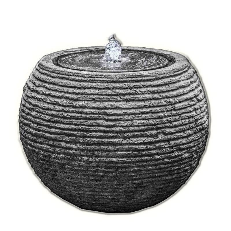 We suggest that birdbath/fountain tops not be left outside in the winter. Once the top fills with water/snow and freezes, the top may crack. All birdbath/fountain bases, bench legs and statuary should be raised up off the ground in winter so they will not freeze to the ground surface. Ideally, a fountain should be stored indoors in the winter away from the elements. However, if a fountain bowl must be left outside, remove all pumps, rubber stoppers, drain pipes, finials and small components, and cover the top with burlap or any absorbent material (old blanket/towel) and then wrapped with dark plastic, making sure that water does not accumulate in the basin and freeze. Fountain pumps, finials, and other small components should be stored indoors. Check the fountain periodically to insure that the cover is secure and water is not accumulating in any fountain component.