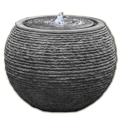 We suggest that birdbath/fountain tops not be left outside in the winter. Once the top fills with water/snow and freezes, the top may crack. All birdbath/fountain bases, bench legs and statuary should be raised up off the ground in winter so they will not freeze to the ground surface. Ideally, a fountain should be stored indoors in the winter away from the elements. However, if a fountain bowl must be left outside, remove all pumps, rubber stoppers, drain pipes, finials and small components, and cover the top with burlap or any absorbent material (old blanket/towel) and then wrapped with dark plastic, making sure that water does not accumulate in the basin and freeze. Fountain pumps, finials, and other small components should be stored indoors. Check the fountain periodically to insure that the cover is secure and water is not accumulating in any fountain component.