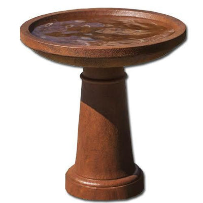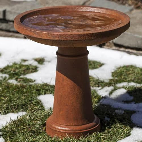 Cleaning Instructions: Campania’s cast stone birdbaths can be cleaned with diluted vinegar and water or with any commercially available mild detergent. Use a soft cloth, sponge, or brush. Do not pressure wash, apply corrosive cleaners or clean with anything abrasive. Note that it may take several cycles of wiping and drying before the birdbath is completely clean. Cast stone contains salts that may effloresce over time. You will notice a fine white powdery coating on the surface of the cast stone if the efflorescence is present in your product. If you wish to remove the salt deposits, Campania can recommend an appropriate an efflorescence cleaner.