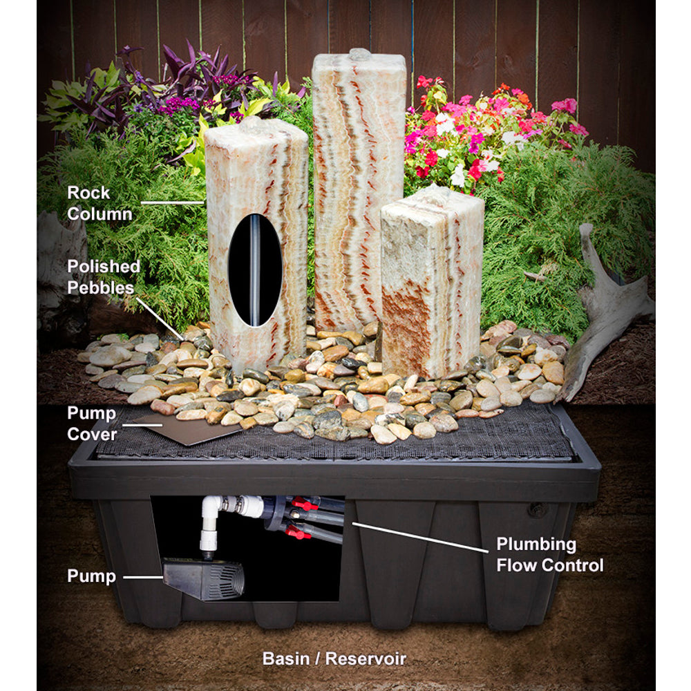 This “transitional” fountain set features a trio of spherical forms, each handcrafted from black granite by skilled artisans. Their graduated scales create a strong visual presence, and due to the inherent properties of stone, each piece is a singular work of art. Its self-contained system comes equipped with a robust 1495 gph Mag-Drive pump, ensuring consistent and strong water flow. 200 lbs. black polished pebbles are included with purchase for a complete aesthetic.
