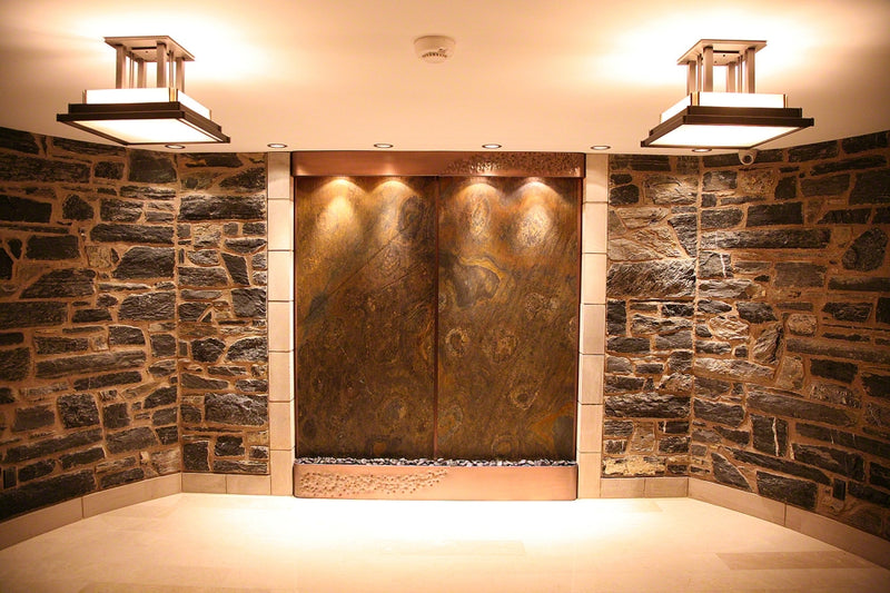 Disclaimer: These custom crafted wall features are made with natural stones. Fissures, fill materials in cavities, flaking of layered stone surfaces, natural grooves or lines, and chips off corners that do not inhibit the performance or aesthetics of the water feature are part of the natural stones and do not constitute a warranty claim.