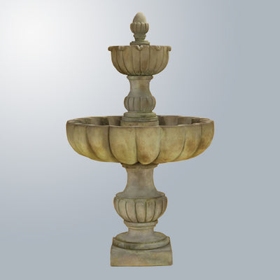 This outdoor fountain is available in 17 Different Finishes. Every finish is hand applied during the production process so color variation is expected. When the finish is applied to the water feature it is designed to replicate the look of naturally aged materials.