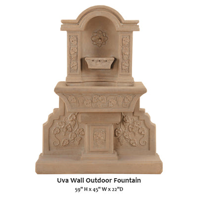 This outdoor fountain is available in 17 Different Finishes. Every finish is hand applied during the production process so color variation is expected. When the finish is applied to the water feature it is designed to replicate the look of naturally aged materials.