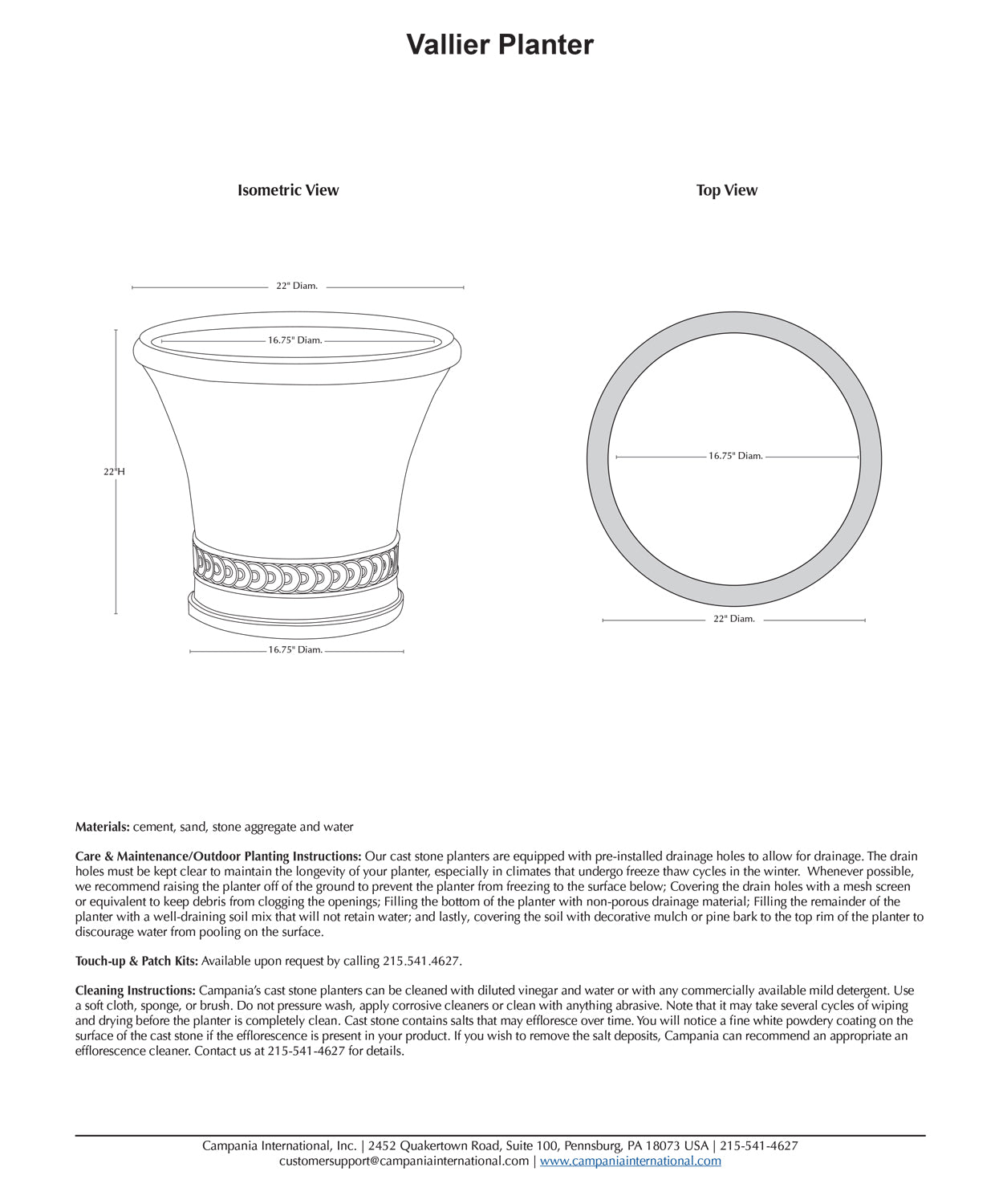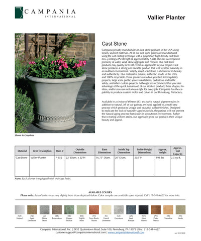 Campania proudly manufactures its cast stone products in the USA using locally sourced materials. All of our cast stone pieces are manufactured using the wet casting technique with a proprietary high density cast stone mix, yielding a PSI strength of approximately 7,500. The mix is comprised primarily of water, sand, stone aggregate and cement. Our cast stone products may qualify for LEED credits as applicable to your project. Cast stone produces a strong and durable product that will weather naturally in an outdoor environment. Simply stated, cast stone is chosen for its beauty and authenticity. Our material is natural, authentic, made in the USA, and 100% recyclable.