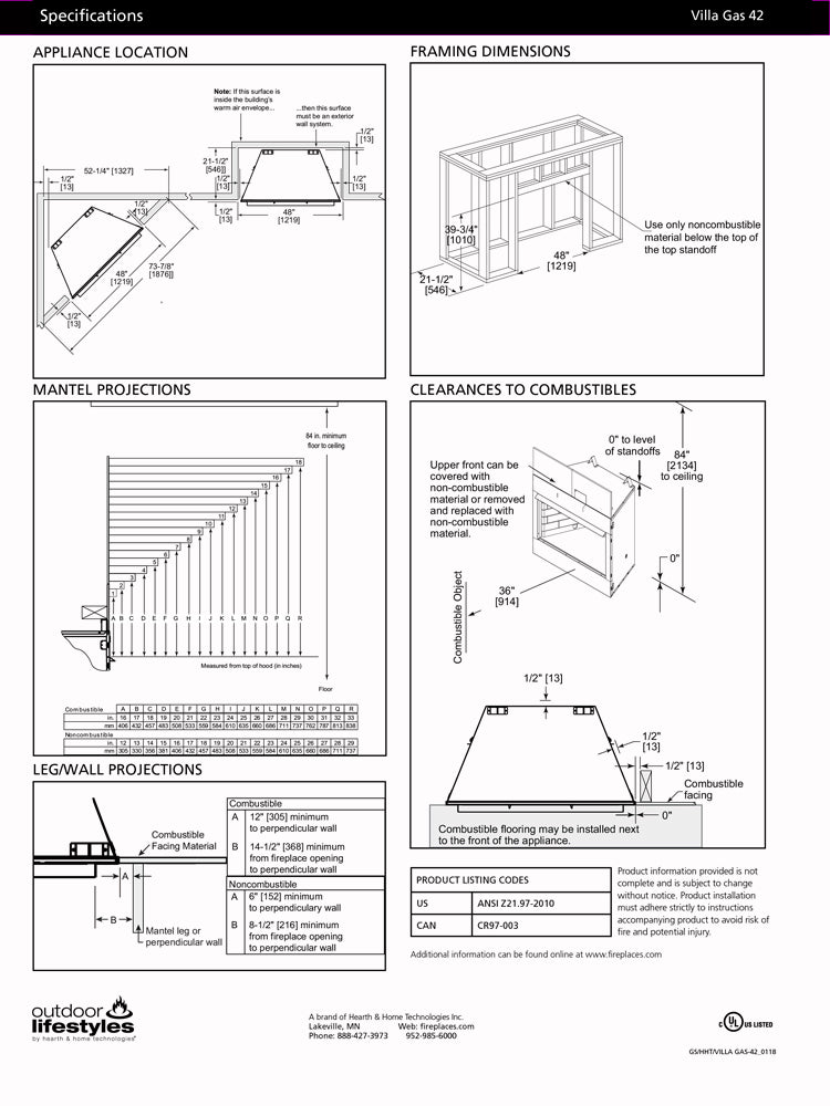 • 36" or 42" wide fireplace adds enjoyment to your space