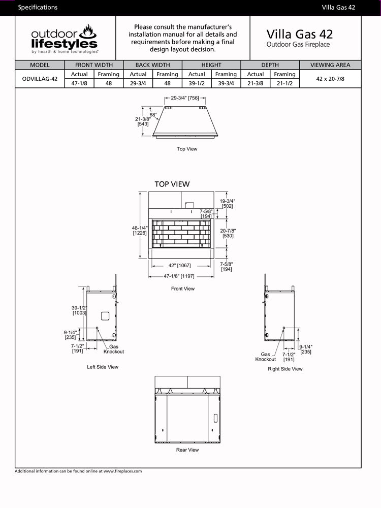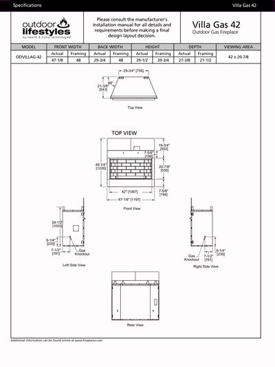 The Villa Gas is a versatile outdoor gas fireplace at a value price. This compact unit can easily be installed on decks or patios. A stainless steel surround thrives in the elements and complements an outdoor kitchen or space. Extend your living into the outdoors. Experience the Villa Gas 42" Outdoor Gas Fireplace with Traditional Refractory.