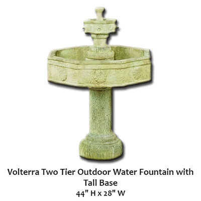 Add an Italian vibe to your garden setting with the Volterra Two Tier Outdoor Water Fountain with Tall Base. This amazing water feature is stunning from all angles. It is constructed of high-quality cast stone concrete and designed to last a lifetime.