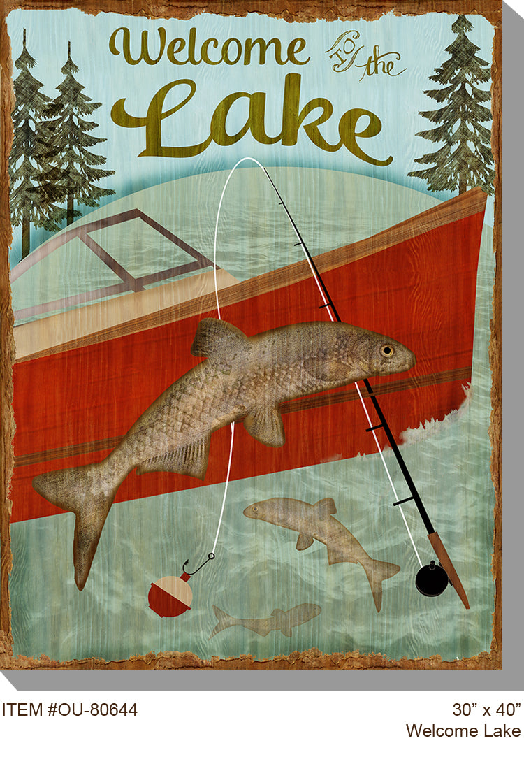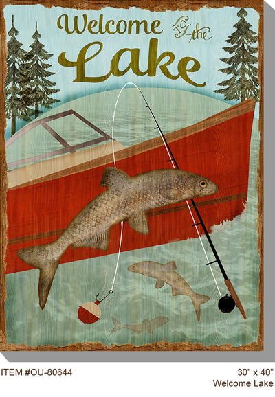 Add a relaxing vacation vibe to your home with the Welcome Lake Outdoor Canvas Art. This vintage-looking, fishing-inspired work of art is ideal for outdoor use. It has a UV protective coating that prevents fading, waterproof, uses stainless steel staples that won't leave rust marks, and comes with a mounting hardware designed to withstand strong winds.
