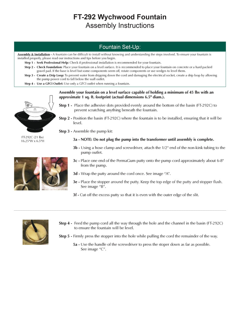 For information on how to winterize your outdoor fountain Click HereFor information on how to remove algae from your fountain Click Here